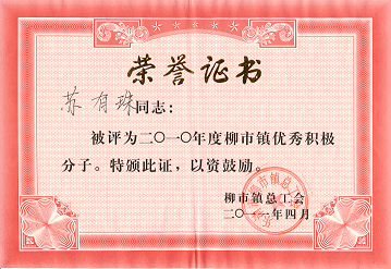4月30日早上,柳市鎮(zhèn)召開(kāi)了慶?!拔逡弧眹?guó)際勞動(dòng)節(jié)暨關(guān)于表彰2010年度工會(huì)先進(jìn)集體和優(yōu)秀個(gè)人的表彰大會(huì),本次會(huì)議旨在回顧總結(jié)全鎮(zhèn)工會(huì)在2010年的工作,研究部署2011年工作任務(wù)。大江控股集團(tuán)財(cái)務(wù)部經(jīng)理、集團(tuán)愛(ài)心基金會(huì)理事長(zhǎng)蘇有珠同志憑借其優(yōu)秀的工作表現(xiàn)榮獲“柳市鎮(zhèn)2010年度工會(huì)積極分子”稱號(hào)。