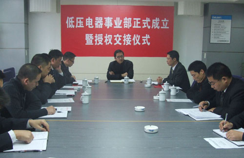 集團(tuán)經(jīng)過(guò)多年發(fā)展,產(chǎn)業(yè)格局日漸增多。為了便于有效管理、高效運(yùn)作,經(jīng)集團(tuán)總裁辦公會(huì)討論決定,于2007年12月8日正式成立低壓電器事業(yè)部,任命林光強(qiáng)同志為執(zhí)行總裁兼低壓電器事業(yè)部總經(jīng)理,事業(yè)部下設(shè)營(yíng)銷中心、行政中心、技術(shù)部、品質(zhì)部、生產(chǎn)一部(含電工、采購(gòu)、核算、三分廠等)、生產(chǎn)二部(儀表)、生產(chǎn)三部(電源)。