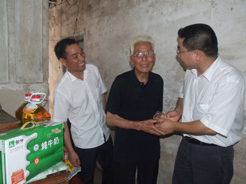 行政部主任王華兵一到徐巖熙的家,就親切地握住老人的手,關(guān)心地詢問他的身體健康狀況,詳細(xì)地了解徐巖熙老人的日常起居和生活情況,鼓勵他多活動,多參加體育鍛煉,保重好自己的身體。了解到徐老已是86歲高齡時,預(yù)備黨員、行政部副主任倪成華說:“每個黨員都有兩個生日,一個是自然生日,另一個是我們黨的生日,今天我們來看望老黨員就是要共同慶祝這一個特殊的生日,您已經(jīng)八十多歲了,1946年就參加了中國共產(chǎn)黨,為黨的事業(yè)做出了極大的貢獻(xiàn),黨齡比我們的年齡還長,一輩子對黨的忠誠信念不變,這種精神值得我們永遠(yuǎn)學(xué)習(xí)。”同時,還帶去了大米、食用油、飲料等日常生活品。
